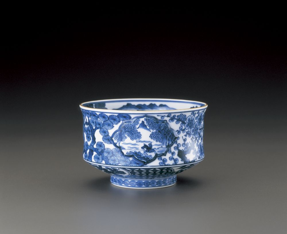 祥瑞山水松竹梅ノ図茶碗Tea bowl,blue and white ‘Shonzui’ design